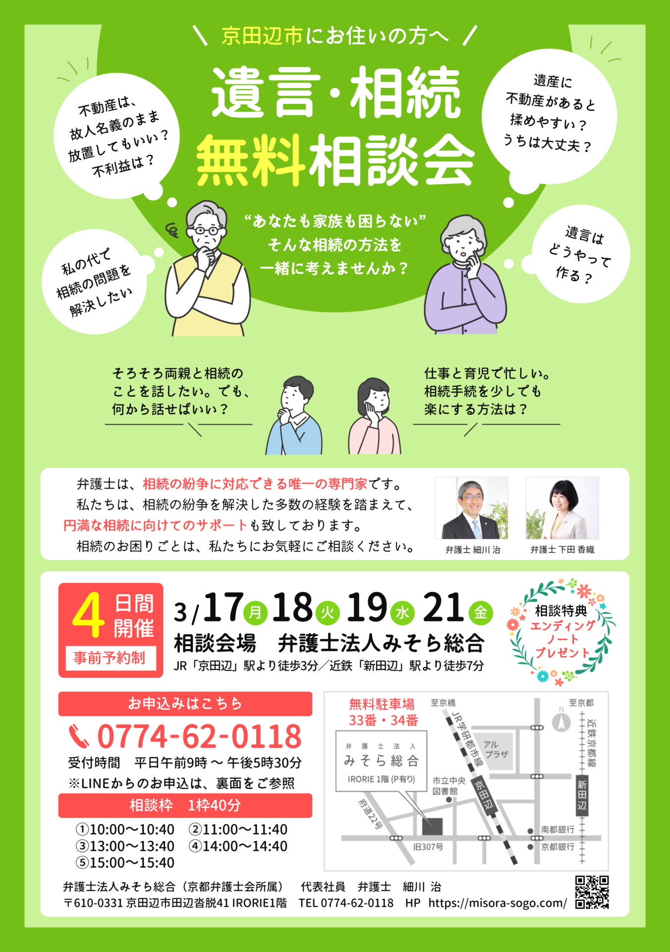 相談枠:① 14:40~15:00 弁護士1枠・司法書士1枠